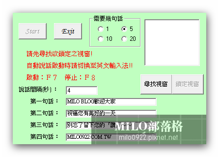 請先鎖定視窗 > 必須切換到英文輸入法 > 啟動F7 > 停止F8