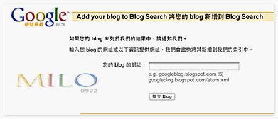 Google部落格登錄位址:http://blogsearch.google.com/ping