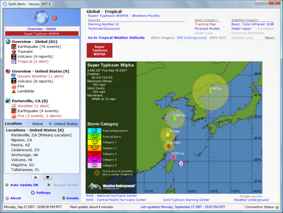 Earth Alerts 提供友善易用的介面,您只要選取您感興趣的地區或地點及特定的天災 (如地震、海嘯、火山、熱帶氣旋、森林大火、山崩、土石流、極端氣候、當地氣候等),這款軟體就會自動地從網路上提供的多個實況資料來源擷取最新的資 訊,並以方便閱讀的方式將預報、地圖和圖像呈現在您的眼前。