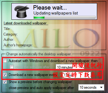 可設定抓取圖片解析度大小與比例、設定下載桌布存放位置、開機啟動後 30秒下載~可避免錯誤訊息