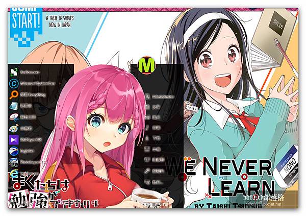 《 我們真的學不來 》 Different world cheat magician Win10 佈景主題THEME11 We Never Learn ぼくたちはべんきょうができない Bokutachi wa Benkyō ga Dekinai 作者筒井大志 ~古橋文乃是文科天才不擅長理科;緒方理珠是理科天才不擅長文科;武元潤香是運動健將不擅長其它學科,特別對英文感到恐懼。唯我成幸在教導三人的過程................