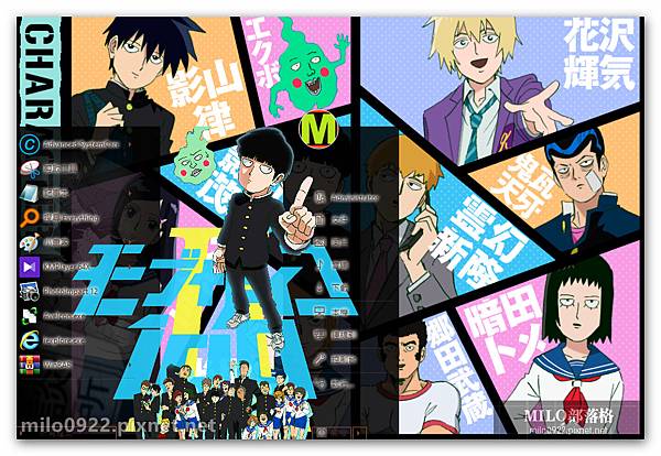 《 路人超能100 》 Mob Psycho 100 Win10 佈景主題THEME11 靈能百分百 ~平凡的中學二年級少年影山茂夫,因其微弱的存在感而遭人戲稱為「路人」,但不起眼的他其實是強大的天生超能力者。歷經每一次的成長,路人開始認為自己的超能力是危險.................