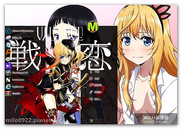 《 戰×戀 》 Val X Love Win10 佈景主題THEME11 日本漫畫家朝倉亮介所創作 奇幻、愛情喜劇、後宮型作品、戰鬥 ~九位為了對抗攻擊人類世界的惡魔而來到現世的少女,在神界的主神「奧丁」主導下強行住進了原本獨居的高中生亞久津拓真的家裡。拓真必須與這些少女「親熱」才能夠提升對方的等級................