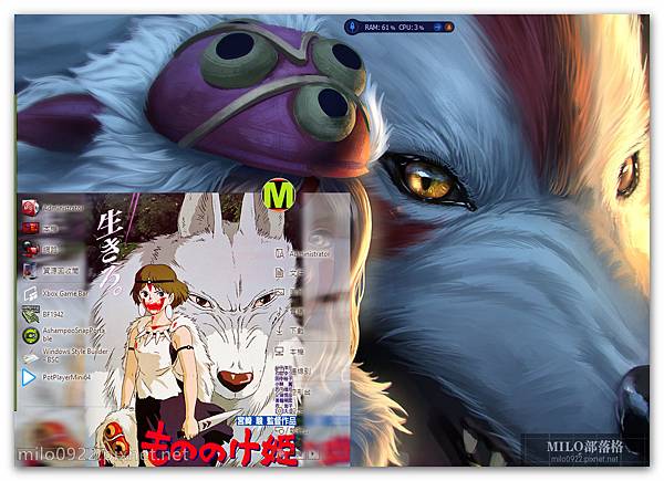 《 魔法公主 》 Mononoke-hime Win10 佈景主題THEME11 もののけ姫 由宮崎駿執導,日本吉卜力工作室製作 此影片上映後,使吉卜力達到了新的里程碑。電影所累積193億日圓票房成績是吉卜力在此之前最賣座的動畫《紅豬》數倍以上,並且曾一度是日本電影史上票房榜首..........