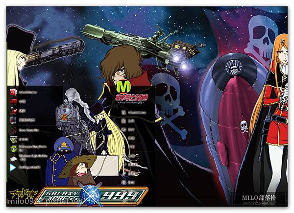《 銀河鉄道999 》 The Galaxy Express 999 Win10 佈景主題THEME11 經典懷舊卡通 日本漫畫家松本零士的漫畫作品 ~星野鐵郎希望搭上銀河鐵道999,到達可以獲得免費改造成機械身體權利的安達羅星雲 母親卻被機械伯爵擄去使用後殺害 後來遇上謎樣的女子給他的車票,於是展開旅程........................