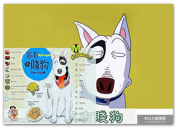 《 家有賤狗 》 Heisei Inu Monogatari Bow Win10 佈景主題THEME11 經典懷舊卡通 バウ 是日本漫畫家Terry山本所創作 ~阿嗚是隻老是為週遭的人帶來不少麻煩的牛頭梗,最初是不賣錢的窮困漫畫家倉元,之後輾轉來到犬神家,但也因此常常帶來許多妙趣橫生的事情......................