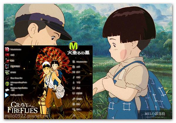 《 螢火蟲之墓 》 Hotaru no haka Win10 佈景主題THEME11 吉卜力 1988年由吉卜力工作室的高畑勳執導 日本東寶系院線公映 ~二戰結束後、三之宮站有一名虛弱死去的少年,在車站人員將少年的屍體挪開時,發現他身上藏有一罐生鏽開不了的糖果罐 ...............