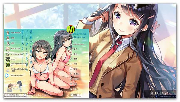 《 青春豬頭少年 》 Seishun Buta Yarou Series Win10 佈景主題THEME11 青春ブタ野郎 日本作家鴨志田一創作的輕小說系列,溝口凱吉負責插畫 設定上也是在《櫻花莊的寵物女孩》的故事時間線之後 ~梓川咲太某天幫妹妹在圖書館借書時,偶然遇見穿著兔女郎服的引退藝人、亦是自己學姊的櫻島麻衣,她因為思春期症候群的症狀而逐漸被人遺忘 ...............